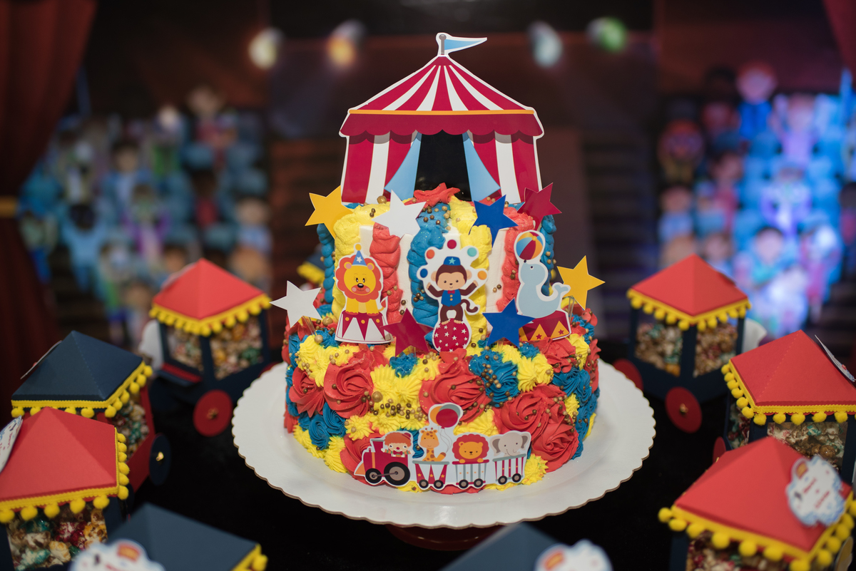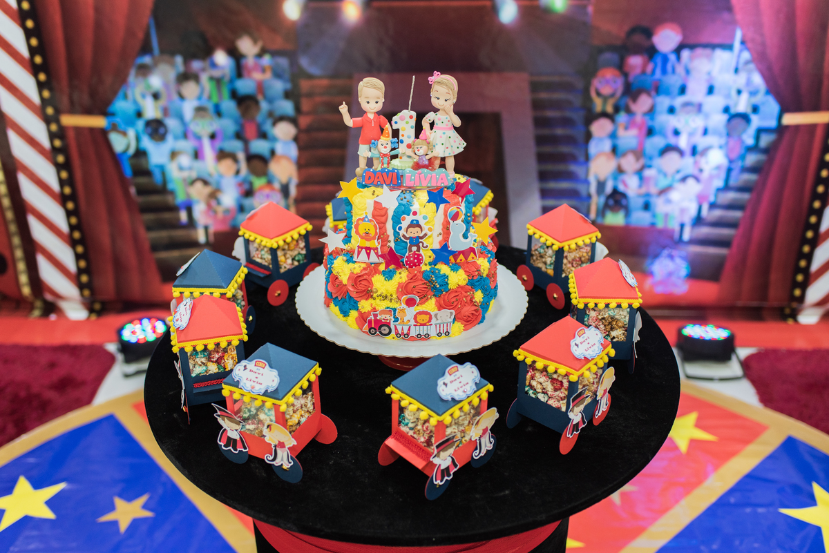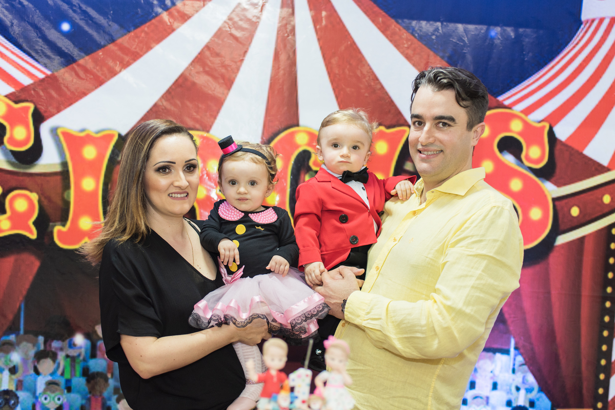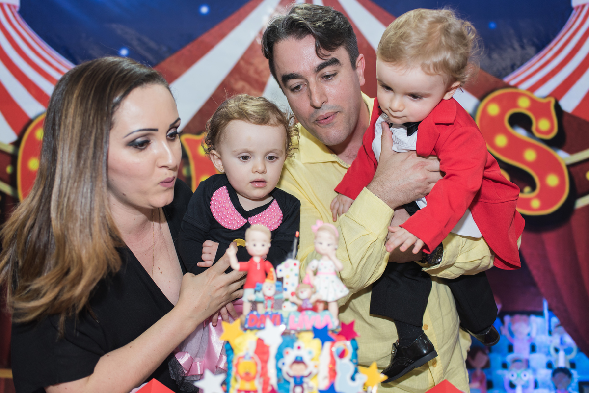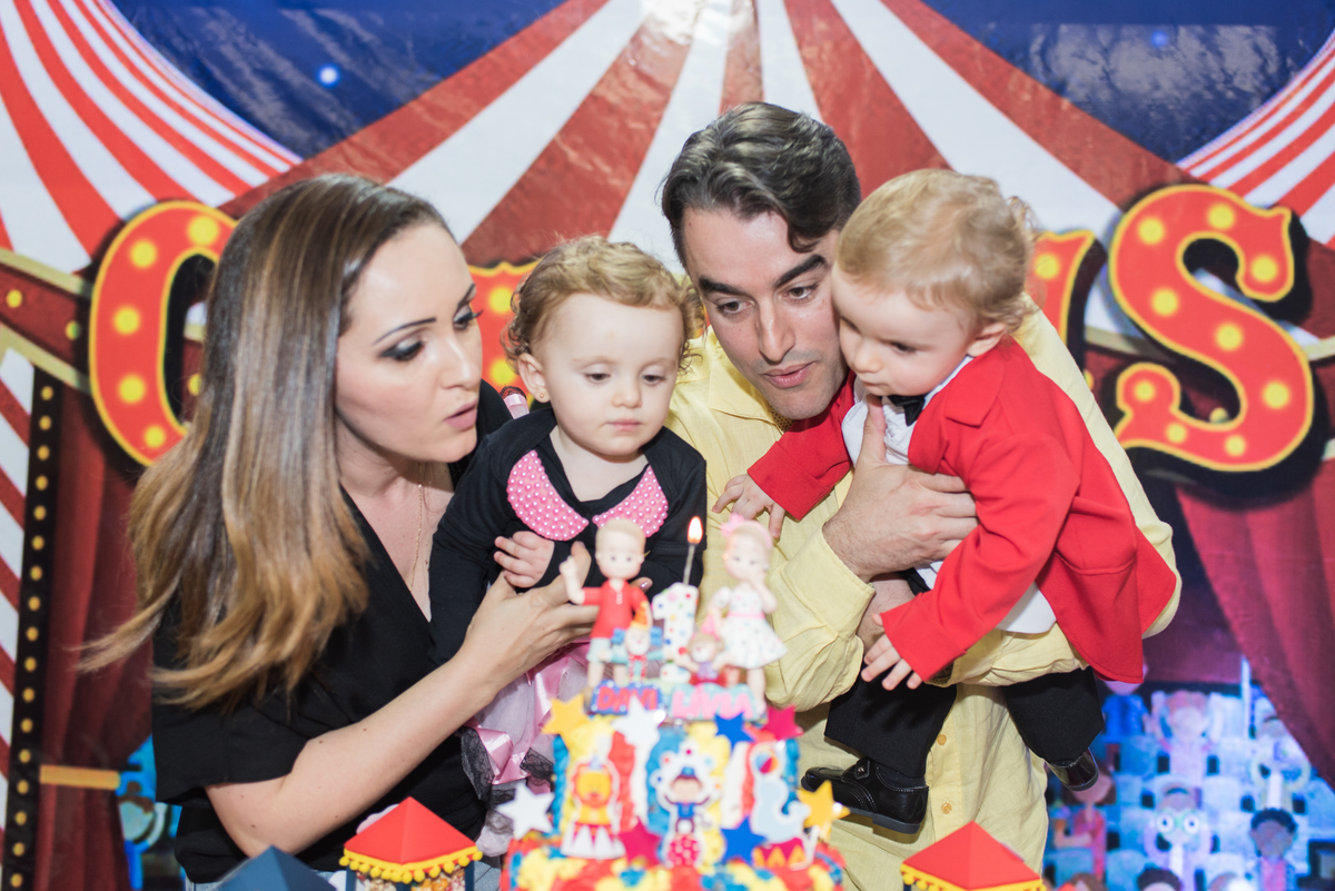 A festinha com o tema circo estava uma graça, com a Livia e o Davi vestidos a caráter para comemorar!!